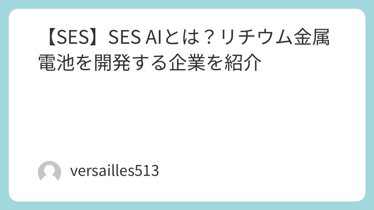 SES AI(ティッカー:SES)は、電気自動車(EV)向けのリチウム金属(Li-Metal)電池を研究開発する米国企業です。軽量かつ高エネルギー密度な電池であるため、電気自動車の航続距離アップが狙うことが出来ます。一方で、安全性や量産することが難しく、ここを乗り越えられるかが株価アップへの壁です。ちなみに少額ですが、私も期待を込めて買っています。